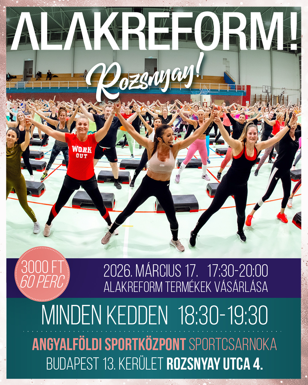 Sok szeretettel várlak Titeket kedden 18:30-kor egy fergeteges 60 perces Alakreform edzésre.